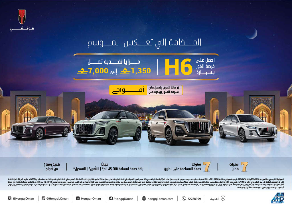 2. يسري العرض من 08/02/2026 ولغاية 08/04/2026 على مركبات هونشي لطرازات سنة 2024 و2025 و2026، المشتراة من وكالة محسن حيدر درويش ش.م.م من قبل عملاء التجزئة للاستخدام الشخصي فقط.